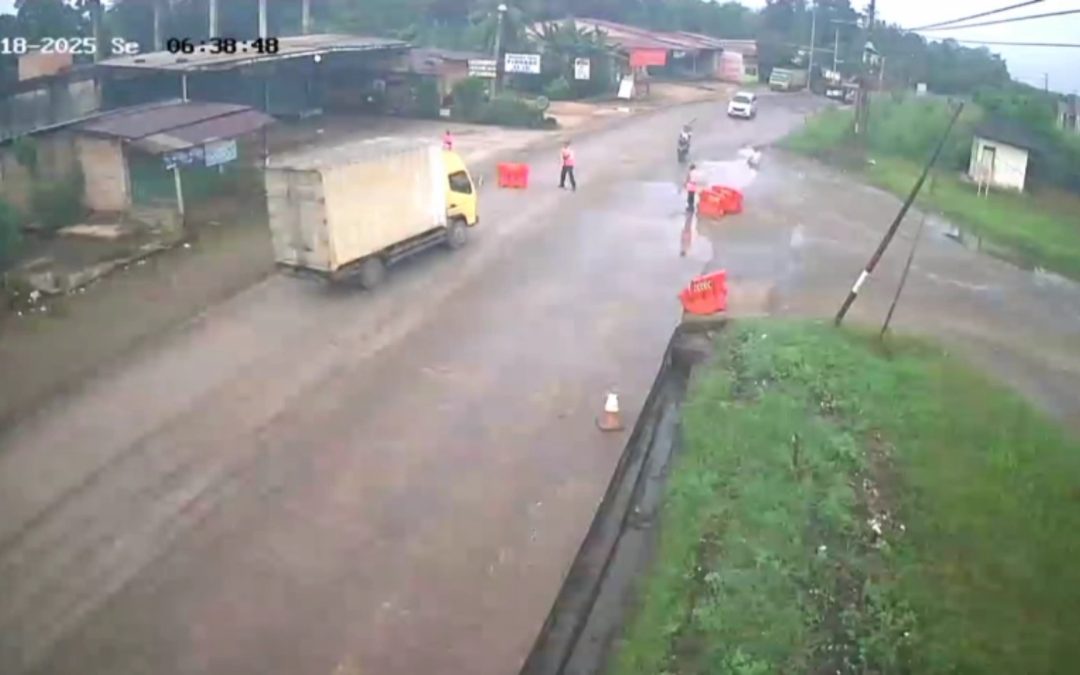 Berdasarkan rekaman CCTV, tampak sejumlah petugas tengah mengarahkan sebuah truk angkutan barang ke jembatan timbang, namun truk tersebut malah melaju kencang dan langsung menabrak salah seorang petugas UPPKB.